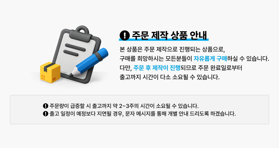 주문이 급증해 제작이 지연될 경우 배송 일정이 변동될 수 있습니다.